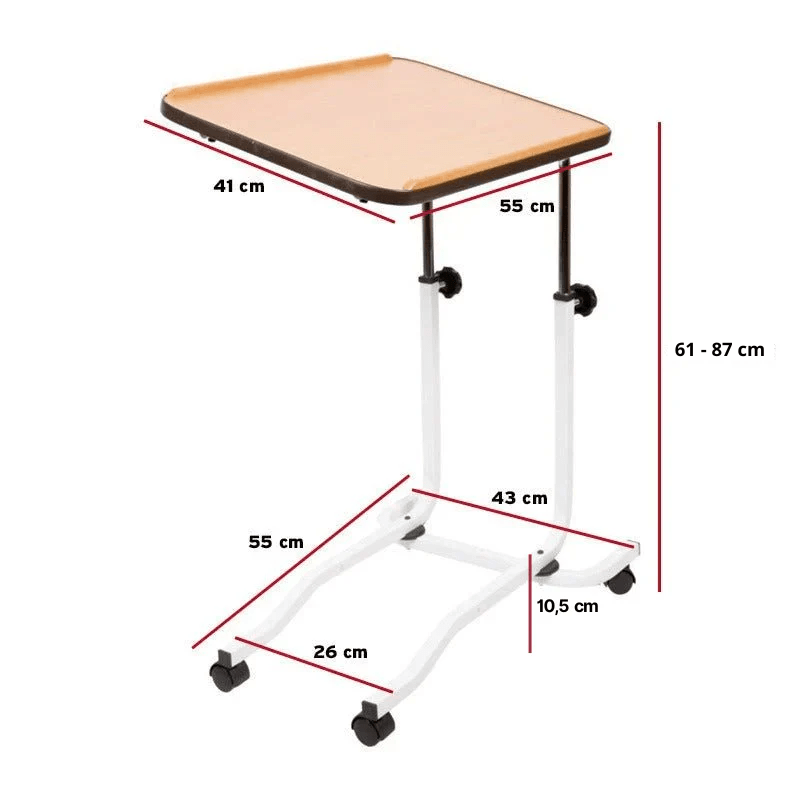 Enkelt, alsidigt og brugervenligt sengebord med fire hjul fra, der nemt kan justeres i højden og vinkles efter behov.