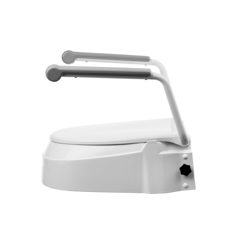 Med en toiletforhøjer bliver det nemmere at rejse sig fra toilettet. Toiletforhøjeren kan justeres i tre forskellige højder, og er let at spænde fast i hullerne, hvor det originale toiletsæde har været monteret. Det er også muligt at skråstille sædet, så det kan hæves både foran eller bagved.