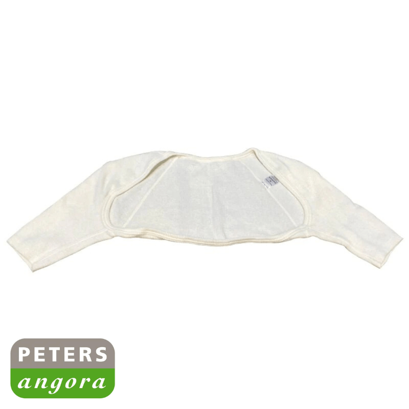 Lun skuldervarmer i blødt og lækkert angorauld fra Peters Angora, der isolerer og giver naturlig varme. Skuldervarmeren er med korte ærmer, holder godt på varmen og er behagelig at have på.
