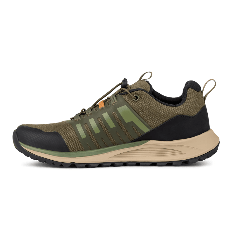 Let og rummelig green Comfort herresko i olivengrøn med en overdel i åndbar tekstil og mesh, som sikrer god ventilation og komfort. Skoen har elastiske snørebånd med hurtig-lås, så du nemt kan tilpasse pasformen.