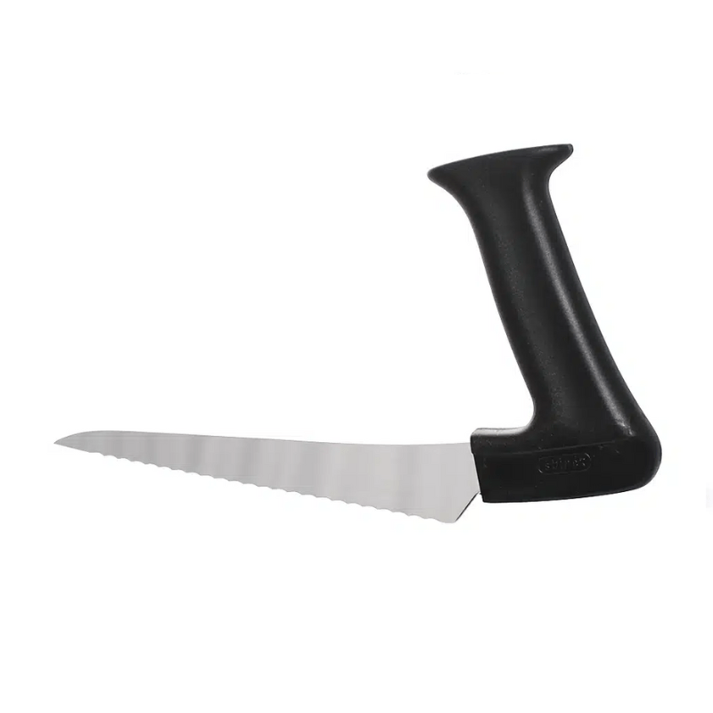Ergonomisk universalkniv med bølget skær fra Stirex. God til at skære alt fra brød til grøntsager med.