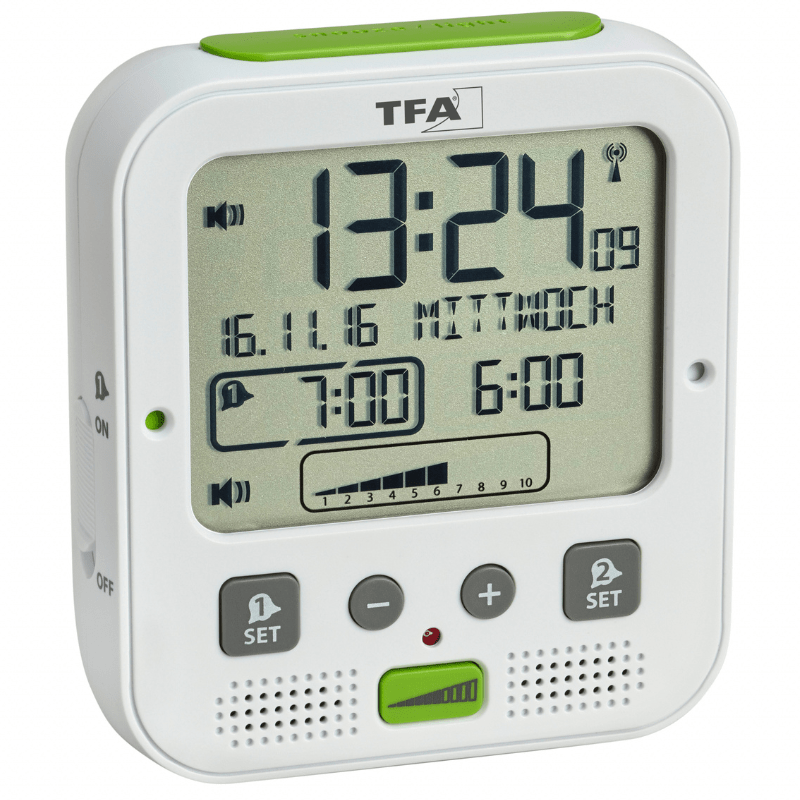 Du har mulighed for at indstille to forskellige vækketidspunkter, og kan selv justere alarmens lydstyrke og tonehøjde, så den passer til dit behov.