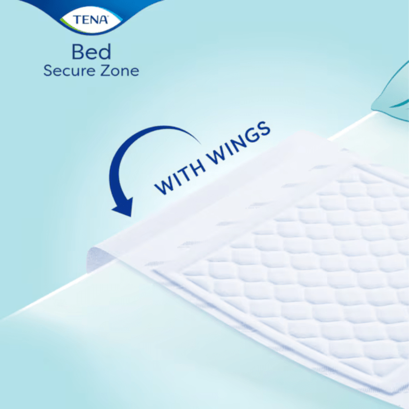 Dette bløde og pålidelige sengeunderlag fra TENA er ideelt, når der er risiko for lækager og behov for ekstra beskyttelse af sengen. De praktiske vinger holder underlaget sikkert på plads hele natten.