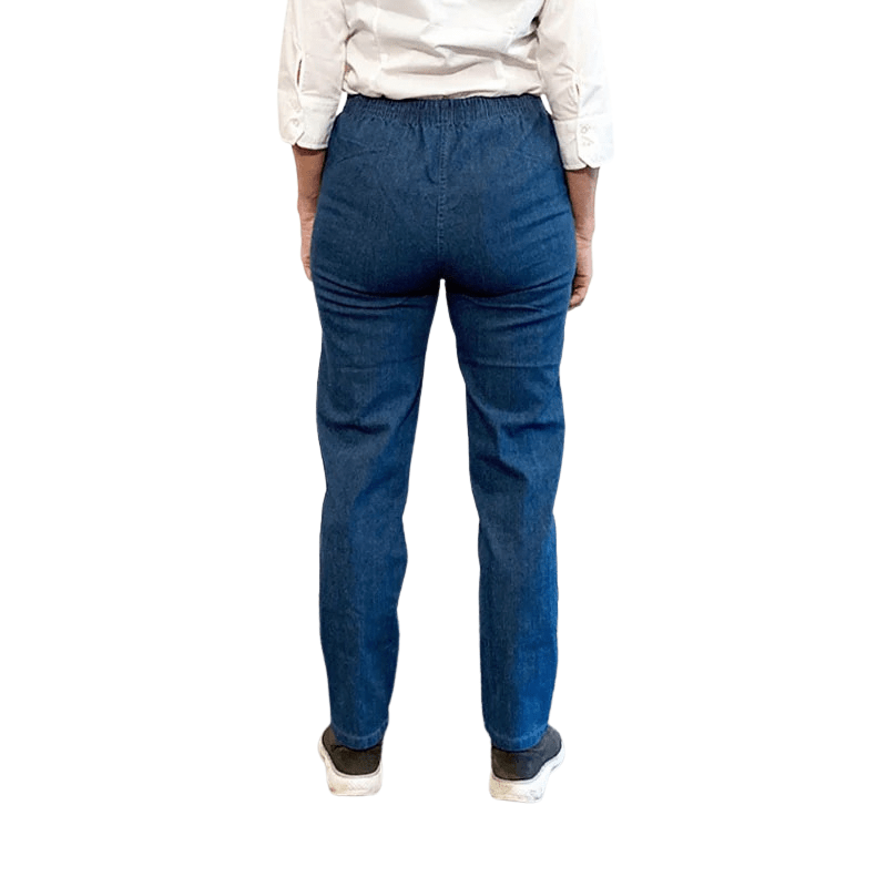 Damebukser med elastikkant - Blå denim - 38 er en bestillingsvare. Se forventet leveringstid nederst i produktbeskrivelsen.