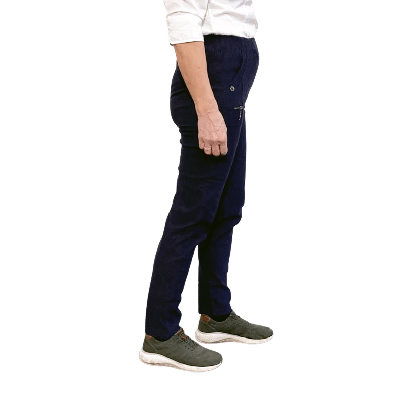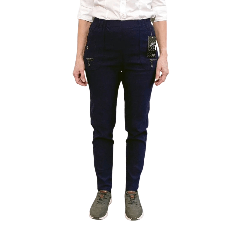 Lækre og enkle bukser i en flot og klassisk navyblå farve med fastsyet elastikkant fra Vanting Collection.