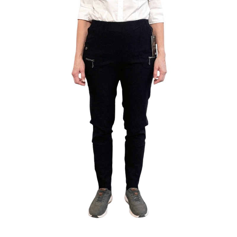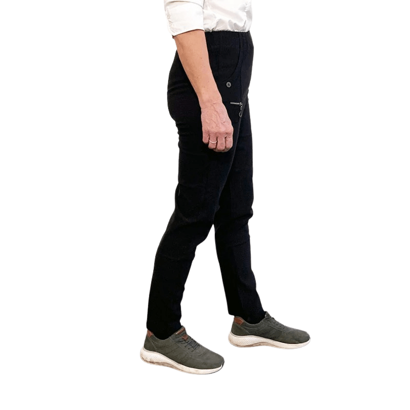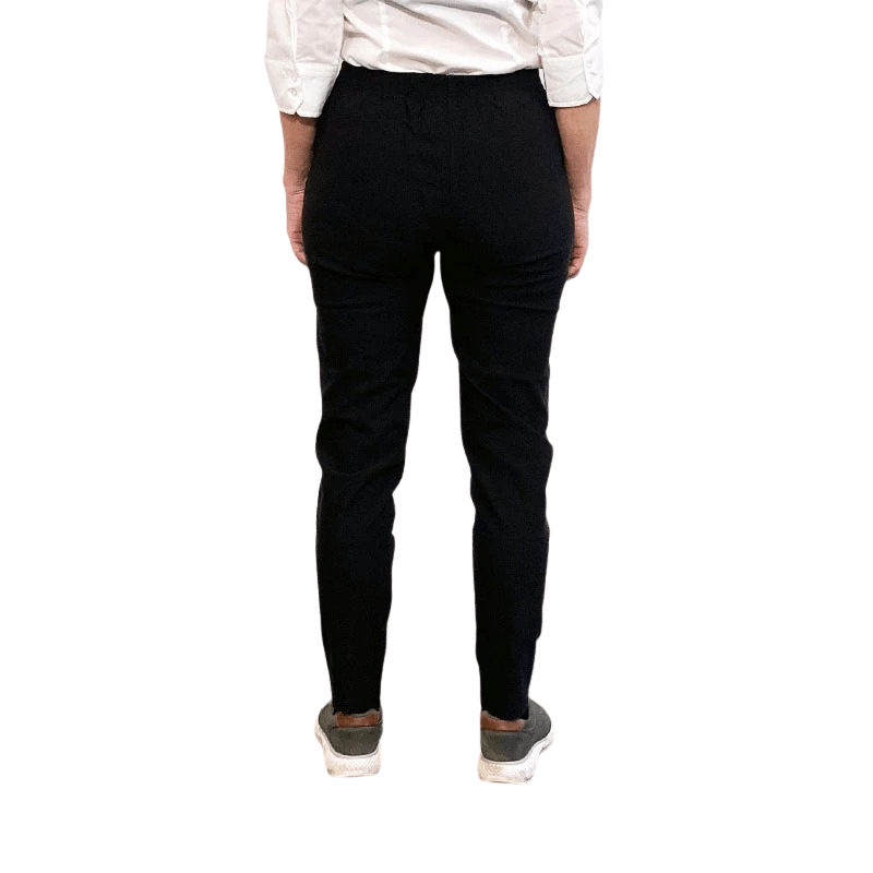 Klassiske og elegante sorte bukser med fastsyet elastik i taljen og stretch fra Vanting Collection.