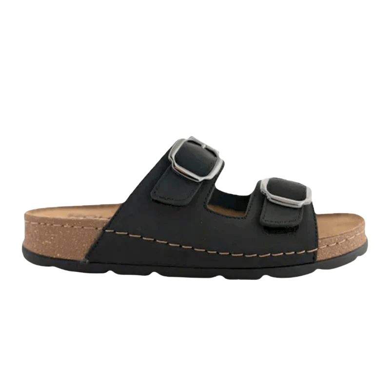 Sandalens ergonomiske indersål - beklædt med åndbar ruskind - er polstret med et let indlæg med memory-gel, der både former sig efter foden og fordeler trykket og herved aflaster foden.