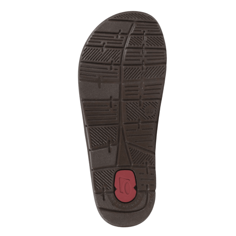 Ydersålen er fremstillet i PU, der gør denne smarte slipper både let, stødabsorberende og skridsikker. Hælen har et lille løft på ca. 3,5 cm.