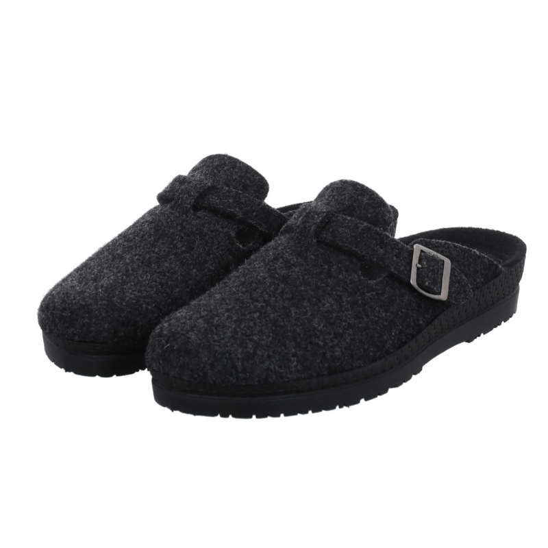 Skoen er let at tage på, da den er åben bagtil – perfekt som praktisk hjemmesko til daglig brug. Den solide, skridsikre gummisål giver god støtte og stabilitet, selv på glatte gulve.