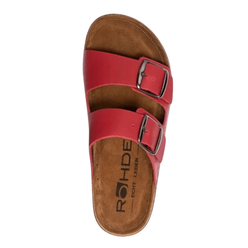 Elegant rød damesandal fra Rohde med blødt kvalitetslæder og justerbare remme, der sikrer en individuel pasform.