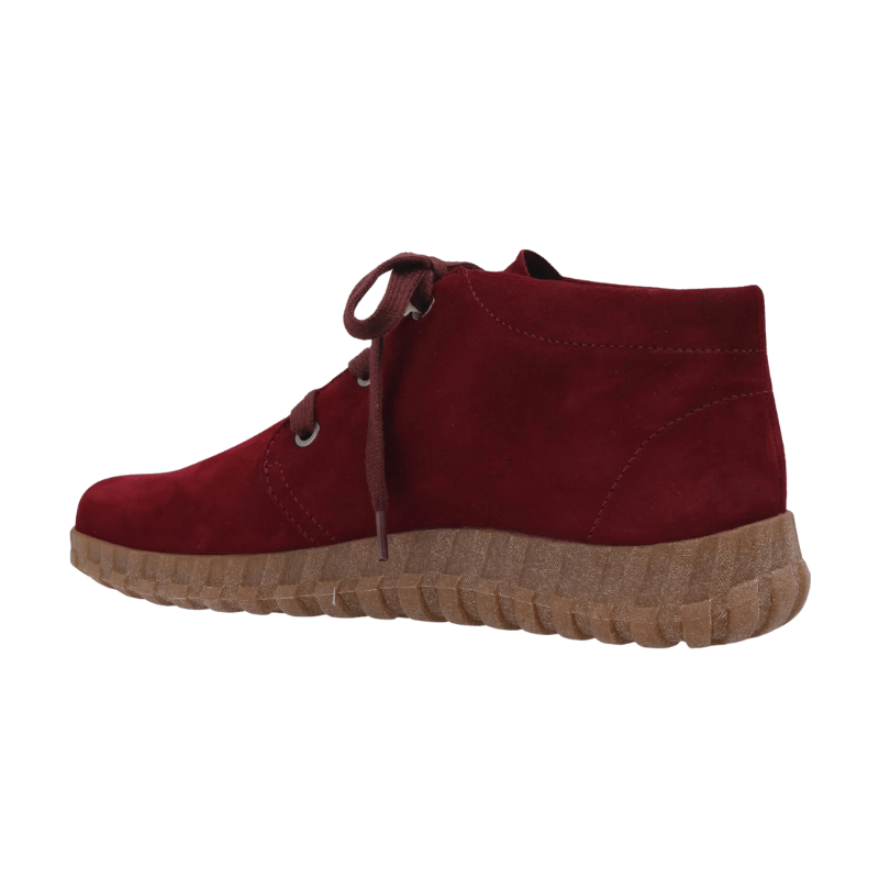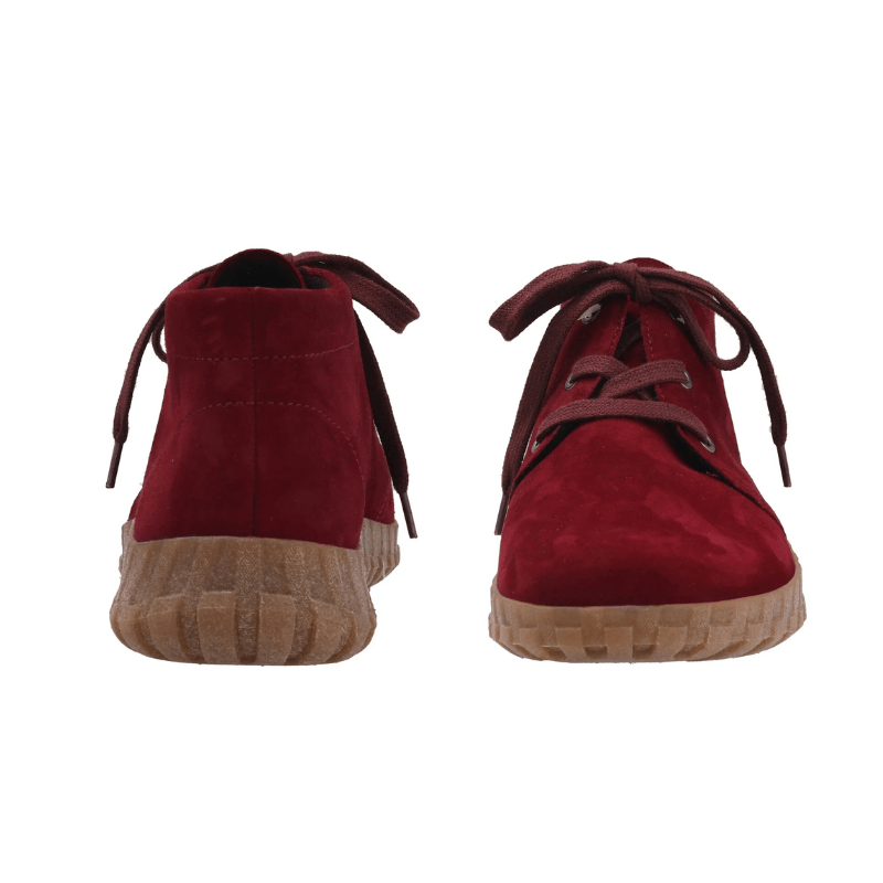 Smart og komfortabel damestøvle fra Semler i bordeauxrødt ruskind med mat overflade. Støvlen er designet med snørebånd (i samme farve), som gør det nemt at justere pasformen.